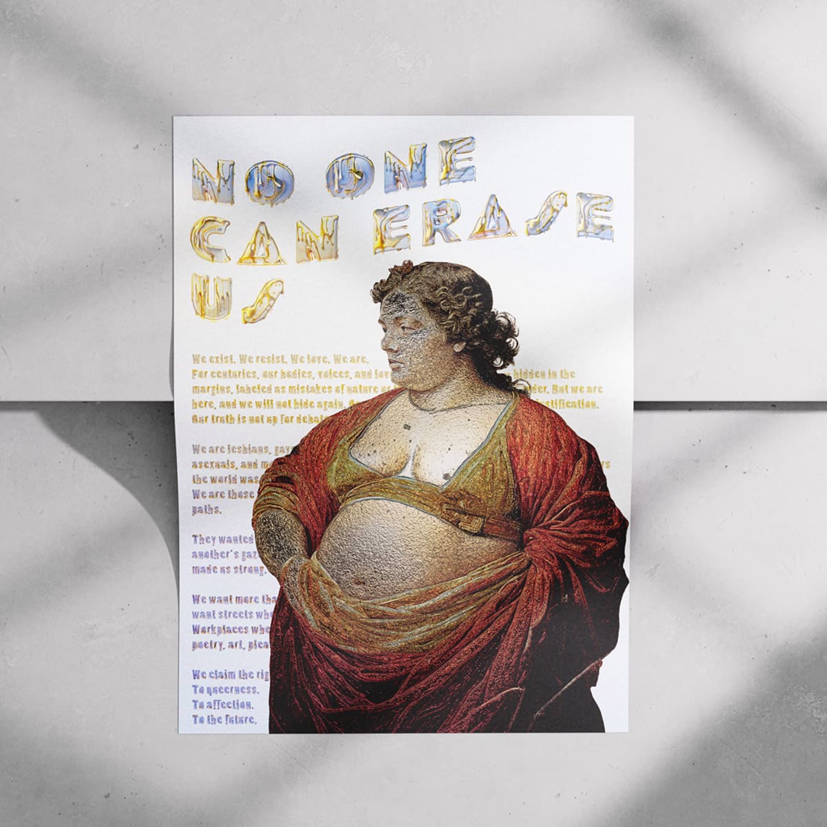 ‘No One Can Erase Us’ no es solo un póster: es un recordatorio de que existimos, brillamos y persistimos. Un homenaje a la resiliencia de la comunidad LGBTQ+ en la colección de nuevoEnMarte.